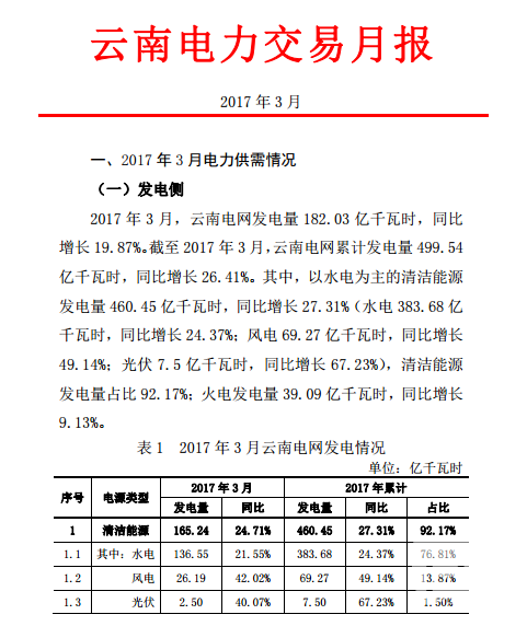 昆明電力交易中心發(fā)布2017年3月云南電力交易月報(bào)