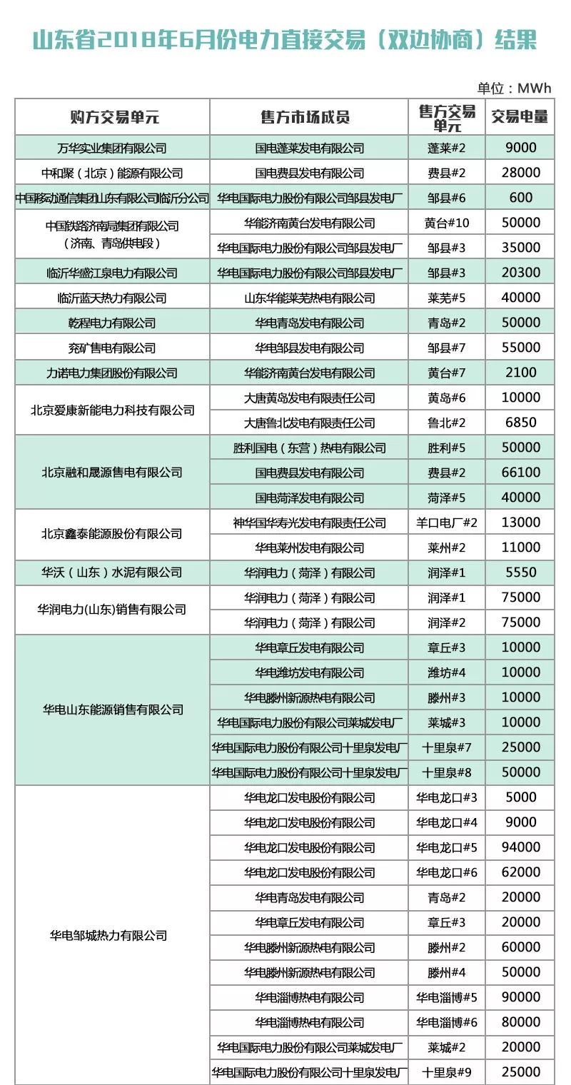 關(guān)于發(fā)布山東省2018年6月份電力直接交易(雙邊協(xié)商)結(jié)果的公告