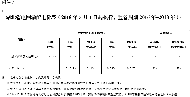2.湖北省電網(wǎng)輸配電價表(2018年5月1日起執(zhí)行,監(jiān)管周期為2016年-2018年)