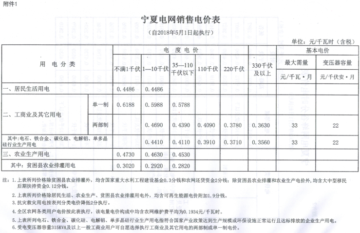 附件:1.寧夏電網(wǎng)銷售電價表
