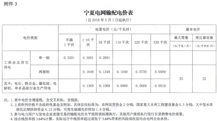 3.寧夏電網(wǎng)輸配電價表