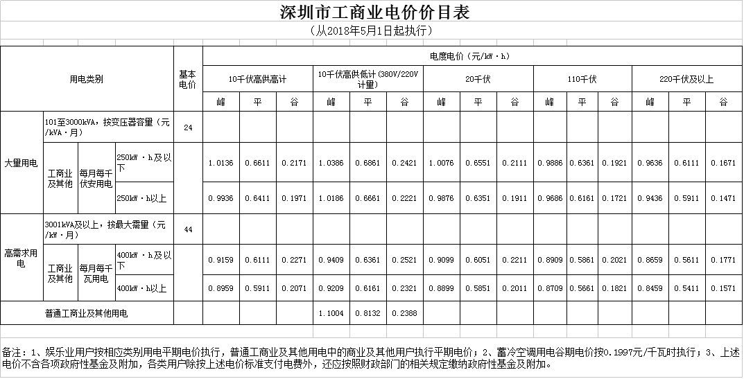 一、全省除深圳市外一般工商業(yè)電度電價(jià)每千瓦時(shí)統(tǒng)一降低0.58分(含稅,下同);深圳市的一般工商業(yè)電價(jià)和大工業(yè)電價(jià)已合并為工商業(yè)及其他電價(jià),其各類工商業(yè)及其他電價(jià)均每千瓦時(shí)統(tǒng)一降低0.12分。各地各用戶調(diào)價(jià)后的具體電價(jià)標(biāo)準(zhǔn)見附件。