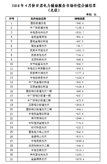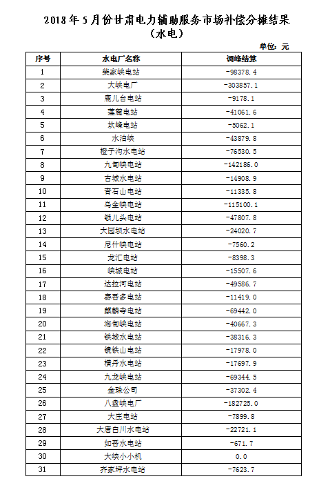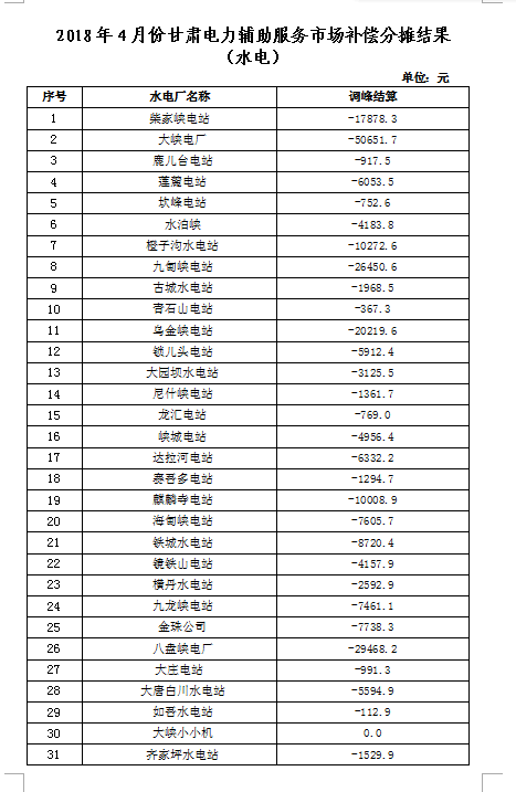 甘肅公布2018年4-5月份電力輔助服務市場補償分攤結(jié)果