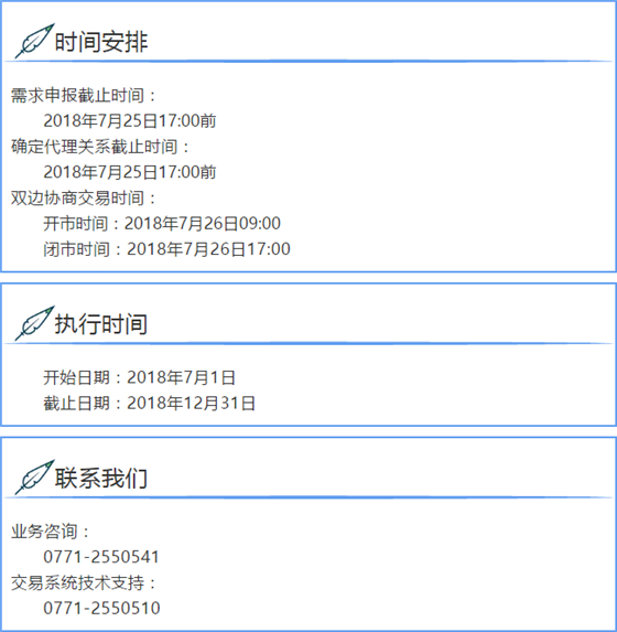 廣西2018年臨時專場交易于7月26日展開:電壓等級為35千伏及以上