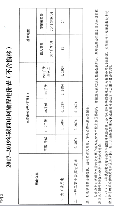 3.陜西電網(wǎng)輸配電價(jià)表(不含榆林)
