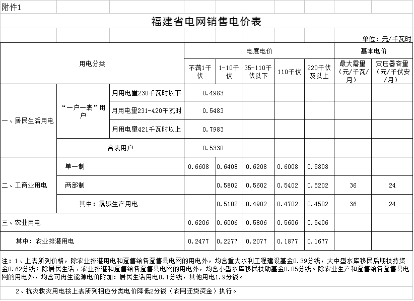 附件:1.福建省電網(wǎng)銷(xiāo)售電價(jià)表 附件點(diǎn)擊下載.rar
