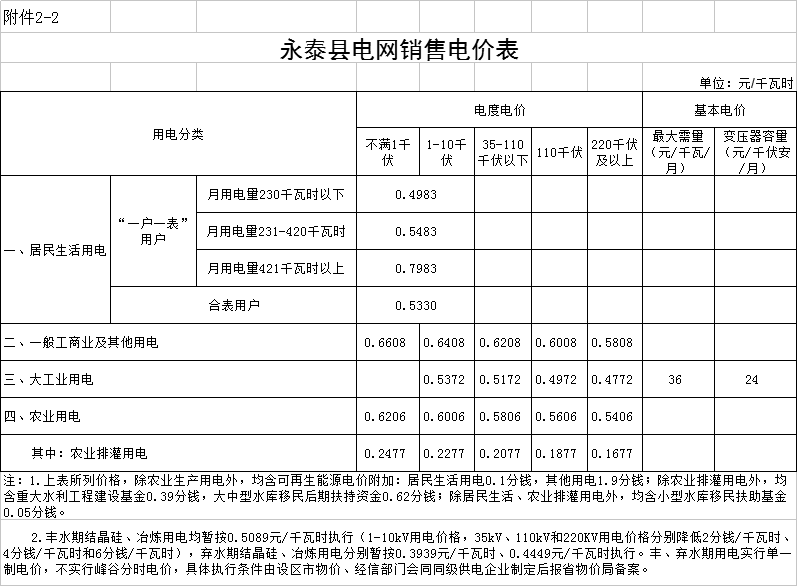 2.福州市各縣級(jí)電網(wǎng)銷(xiāo)售電價(jià)表