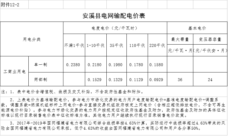 12.泉州市各縣級(jí)電網(wǎng)輸配電價(jià)表