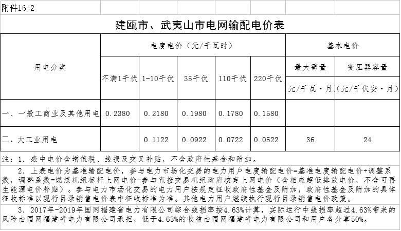 16.南平市各縣級(jí)電網(wǎng)銷(xiāo)售電價(jià)表