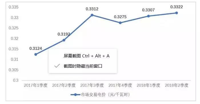 圖10 2017年-2018年2季度光伏市場(chǎng)交易電價(jià)走勢(shì)圖