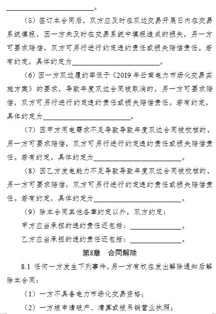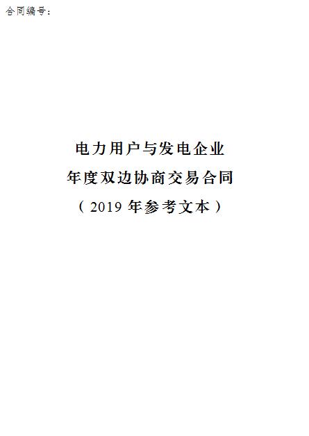 云南2019年年度雙邊協(xié)商交易合同(參考文本)發(fā)布
