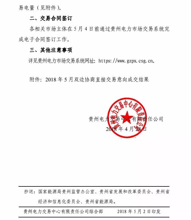 貴州電力交易中心日前發(fā)布《關(guān)于開展2018年5月雙邊協(xié)商直接交易的通知》