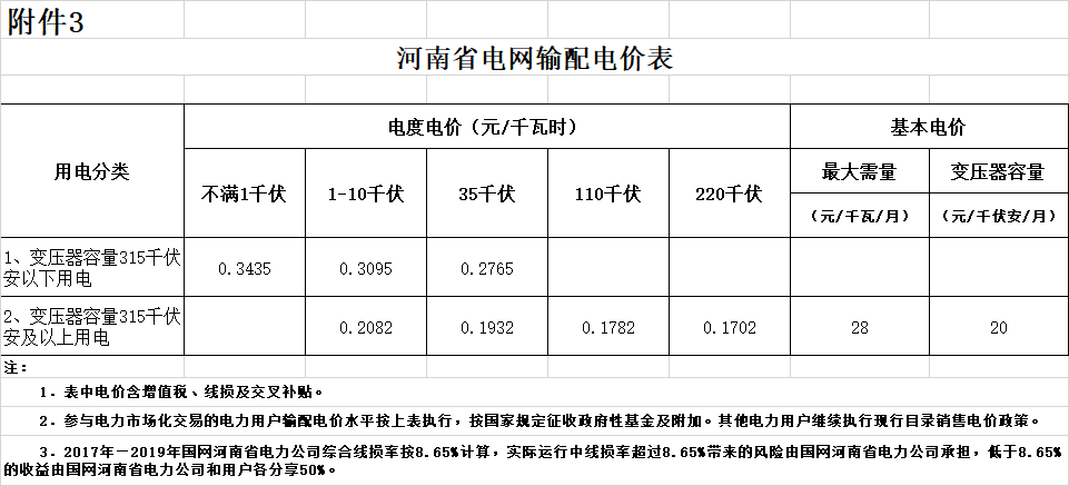 河南省關(guān)于2018年因增值稅稅率調(diào)整相應(yīng)降低工商業(yè)電價(jià)的通知。