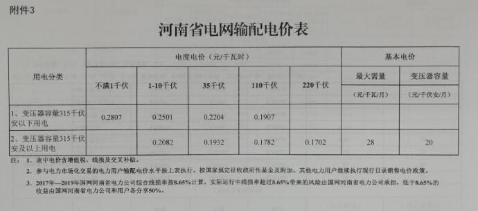 3.河南省電網(wǎng)輸配電價(jià)表