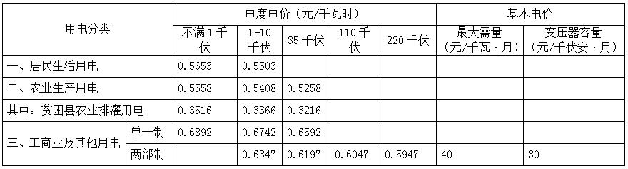 注:1.表中各電價(jià)含增值稅、交叉補(bǔ)貼及線損,不含政府性基金及附加。