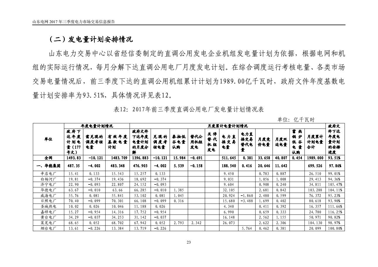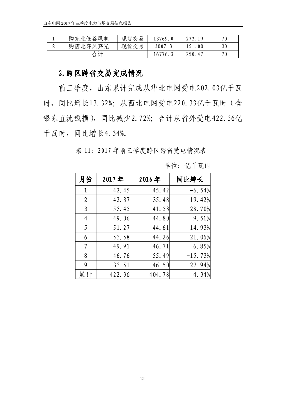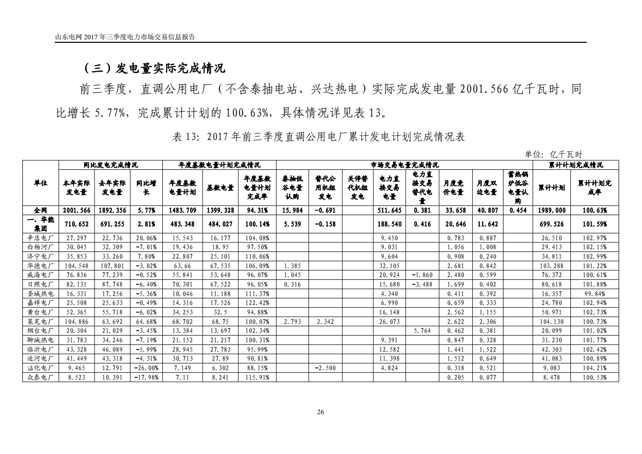 山東電網(wǎng)2017年三季度電力市場(chǎng)交易信息報(bào)告