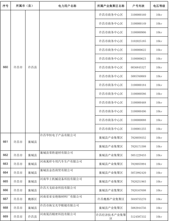 2017年河南省770家新增電力用戶公示名單(第七批)
