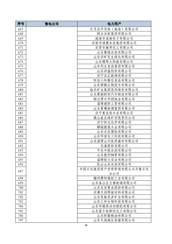 山東2018年省內(nèi)電力交易用戶與售電公司代理關(guān)系及自主參與直接交易用戶名單