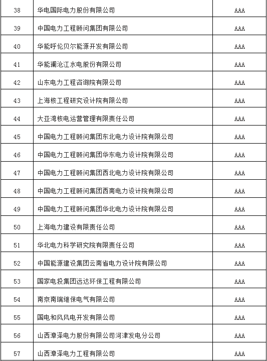 電力行業(yè)2017年信用企業(yè)評(píng)價(jià)結(jié)果公示:101個(gè)AAA級(jí)電力企業(yè)