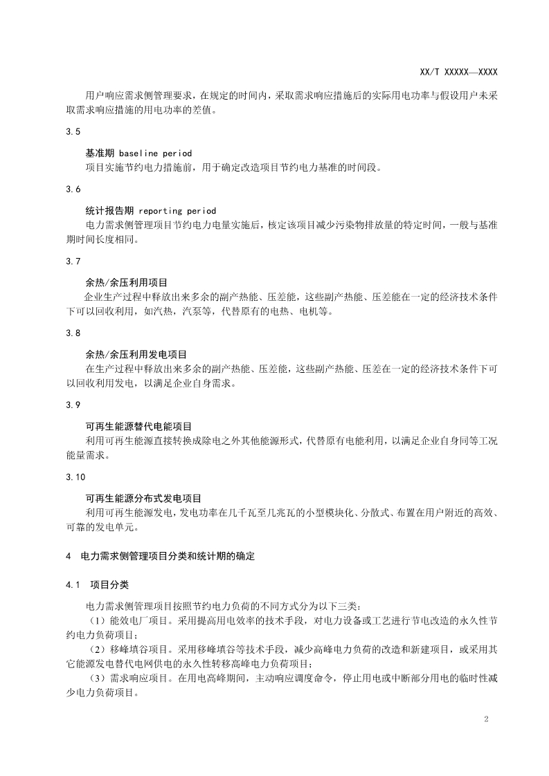 本標(biāo)準(zhǔn)主題章分為七章,其中第四章明確了電力需求側(cè)管理項目的分類和統(tǒng)計期,統(tǒng)計期的重要環(huán)節(jié)需要測量項目數(shù)據(jù)及特性參數(shù),因此在第五章說明了項目分類及電力負(fù)荷測算原則與類別。其次,第六章從能效電廠、移峰填谷及需求響應(yīng)三類項目方面規(guī)定了電力負(fù)荷的核定方法。第七章依據(jù)直接比較法和電量轉(zhuǎn)移方法隊項目的節(jié)約電力進(jìn)行測量與驗證。