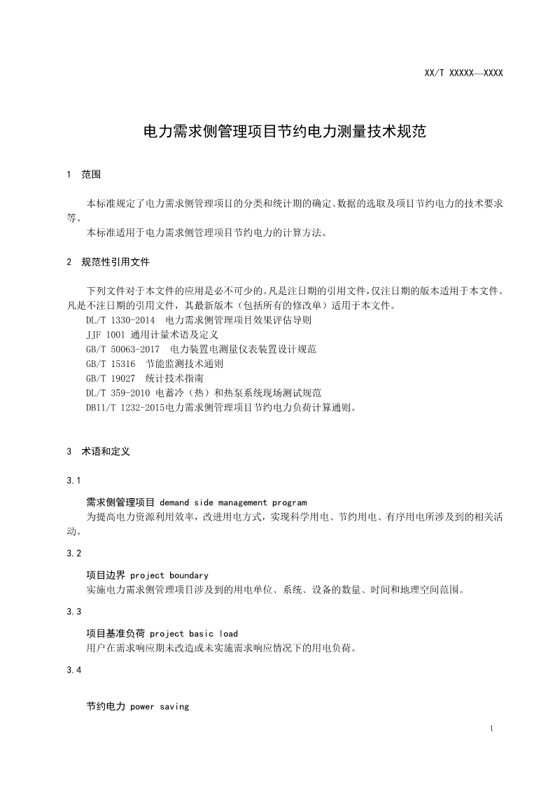 電力需求側(cè)管理項目節(jié)約電力測量技術(shù)規(guī)范編制說明