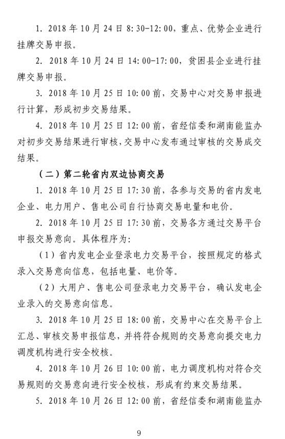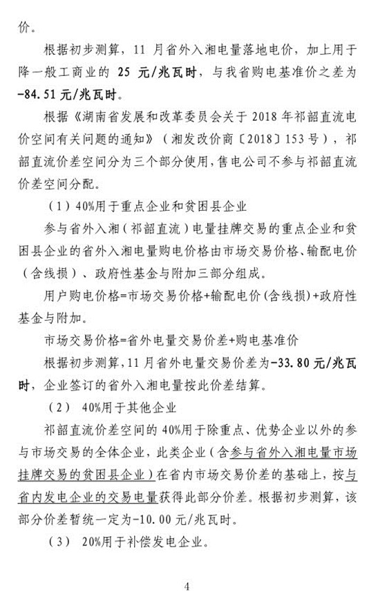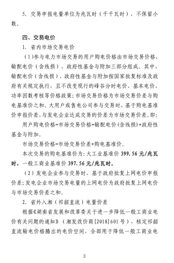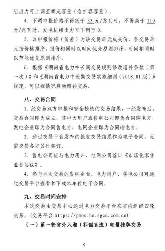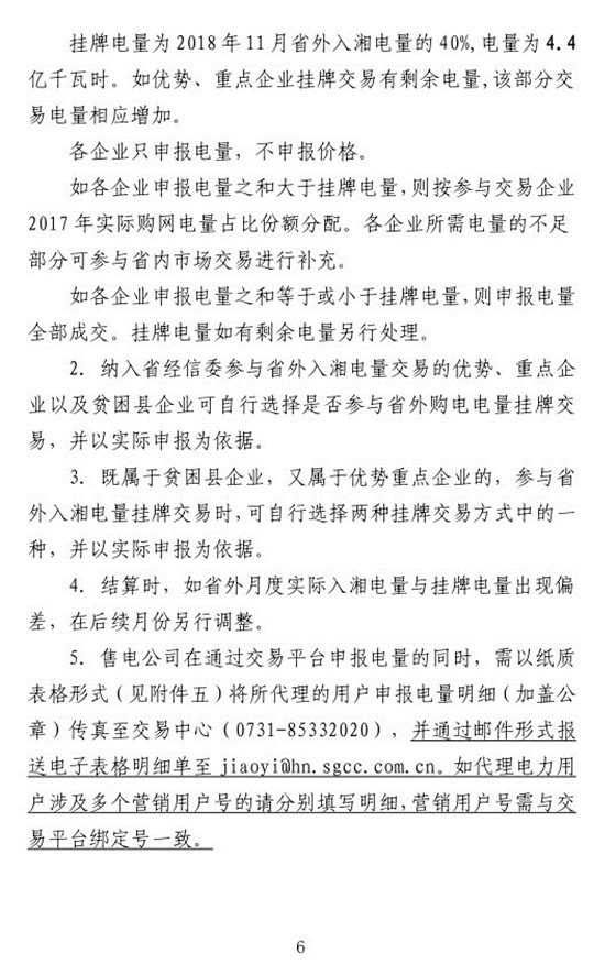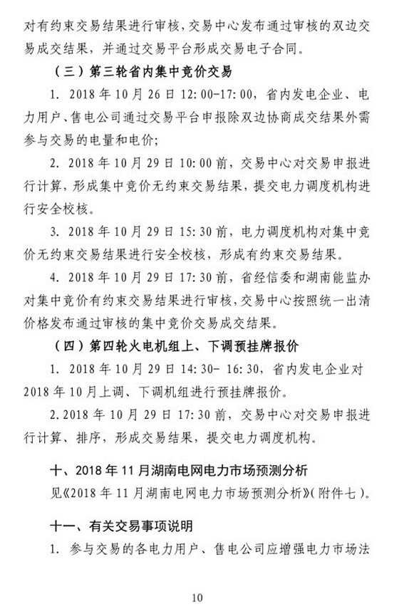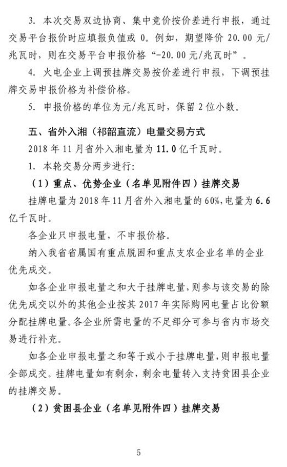 湖南2018年11月電力市場交易:火電下調申報價格不得低于3.3分/千瓦時