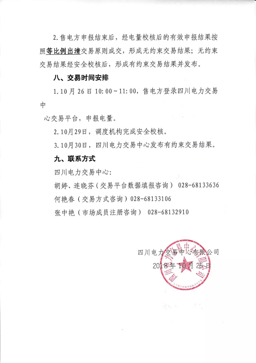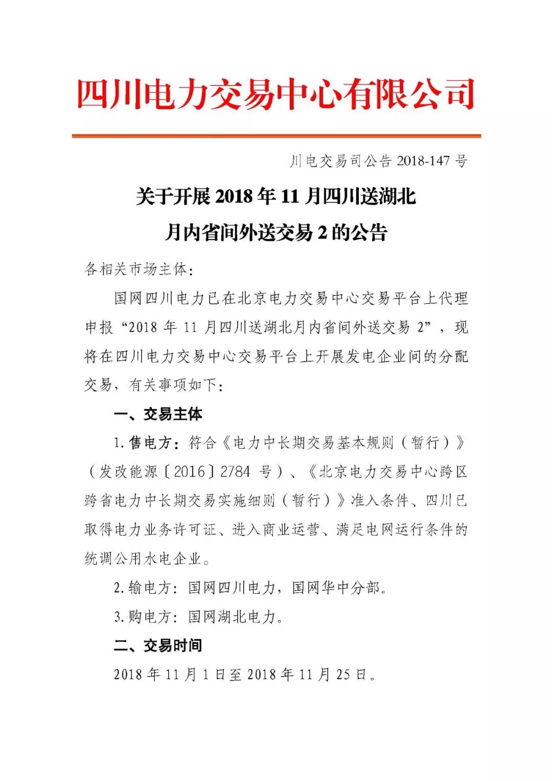 公告 | 關(guān)于開展2018年11月四川送湖北月內(nèi)省間外送交易2的公告