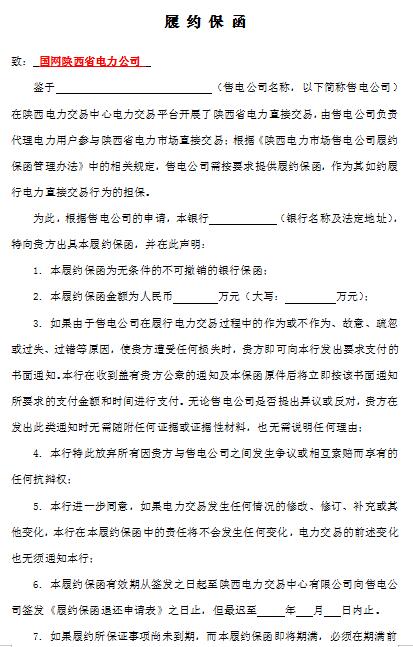 截止日期最早為11月15日 陜西售電公司開始繳納2019年履約保函
