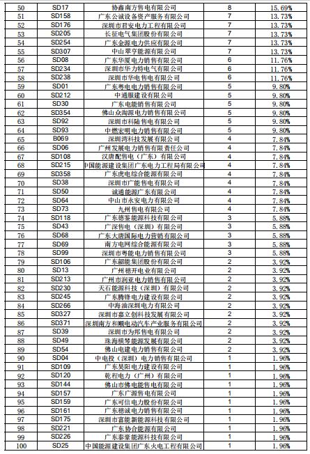 (三)華能廣東能源銷售有限責任公司、深圳市深電能售電有限公司、廣東智光電力銷售有限公司,累計完成自主申報47天,參與率為92.16%。