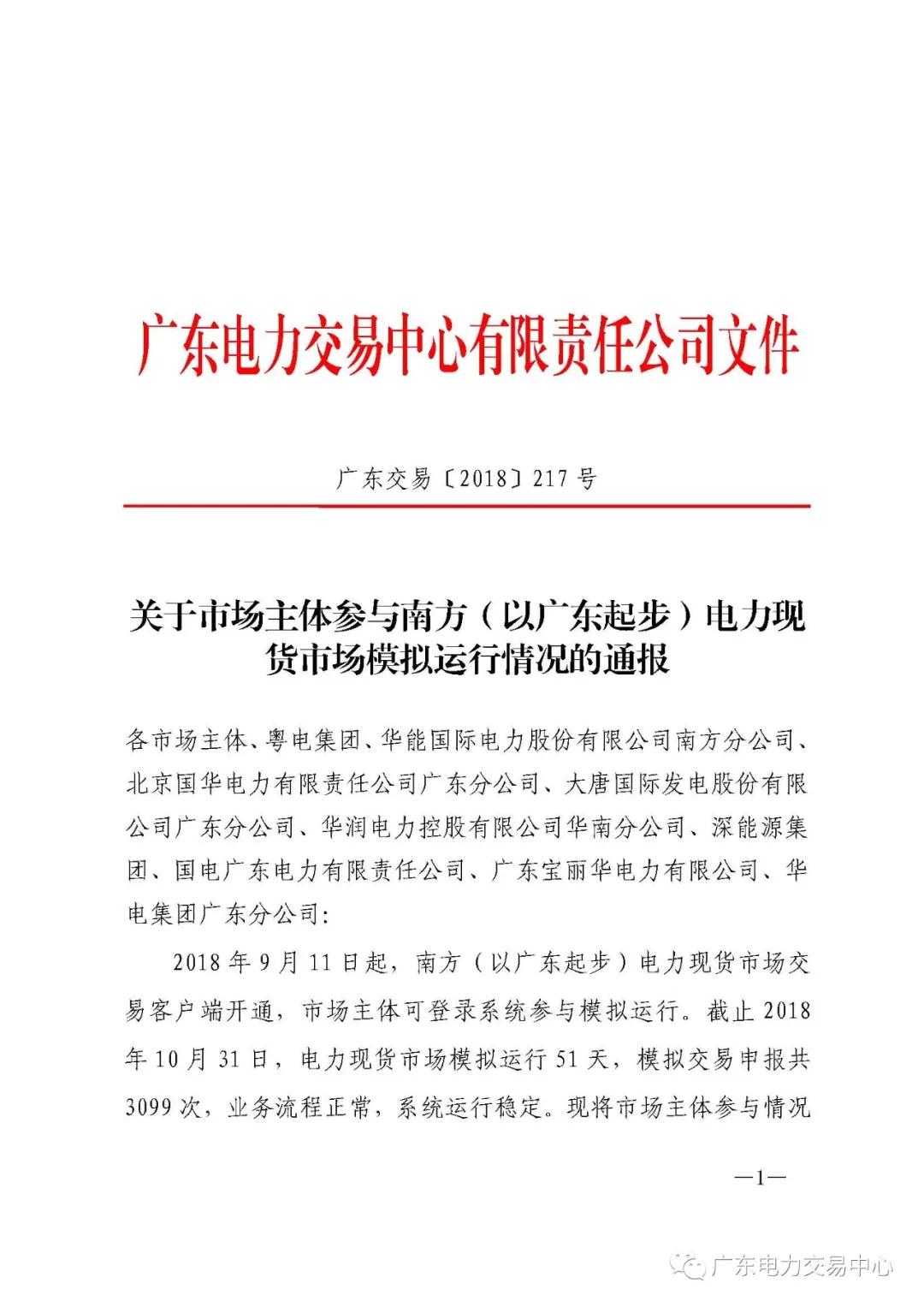 廣東電力交易中心日前發(fā)布了《關于市場主體參與南方(以廣東起步)電力現(xiàn)貨市場模擬運行情況的通報》,2018年9月11月起,南方(以廣東起步)電力現(xiàn)貨市場交易客戶端開通,市場主體可登陸系統(tǒng)參與模擬運行。截止2018年10月31日,電力現(xiàn)貨市場模擬運行51天。