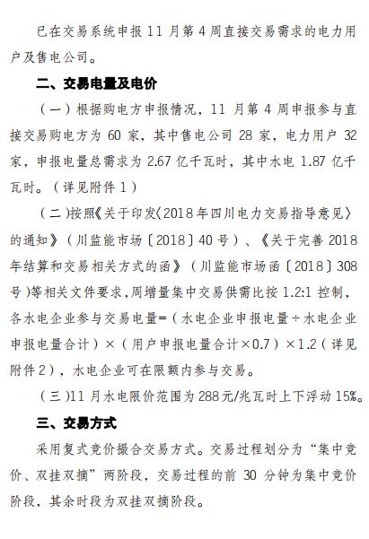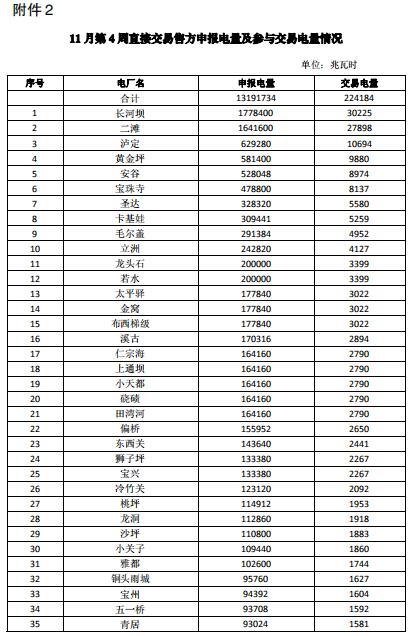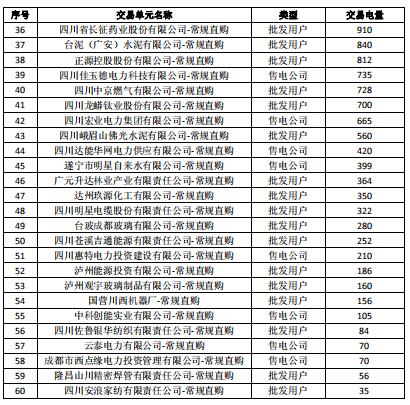 四川2018年11月第4周直接交易:購電方60家(售電公司28家)