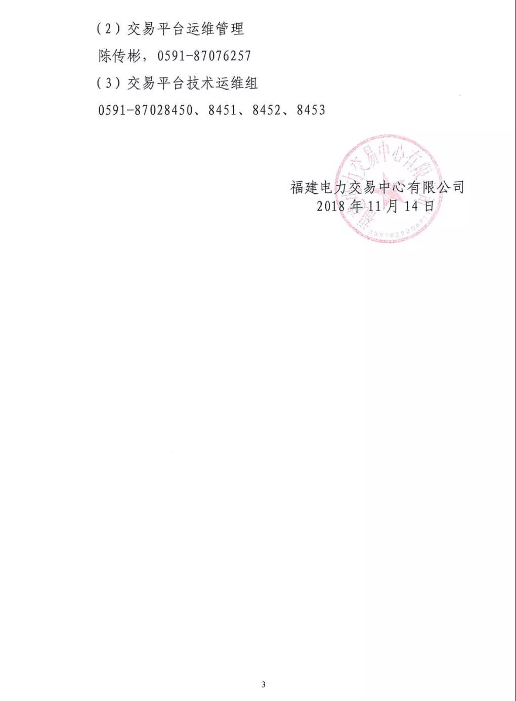 福建關于組織開展2018年12月份月度集中競價直接交易的公告