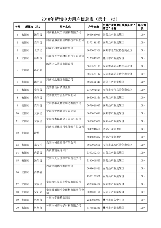 698家!河南公示2018年第十一批新增電力用戶名單(附名單)