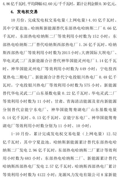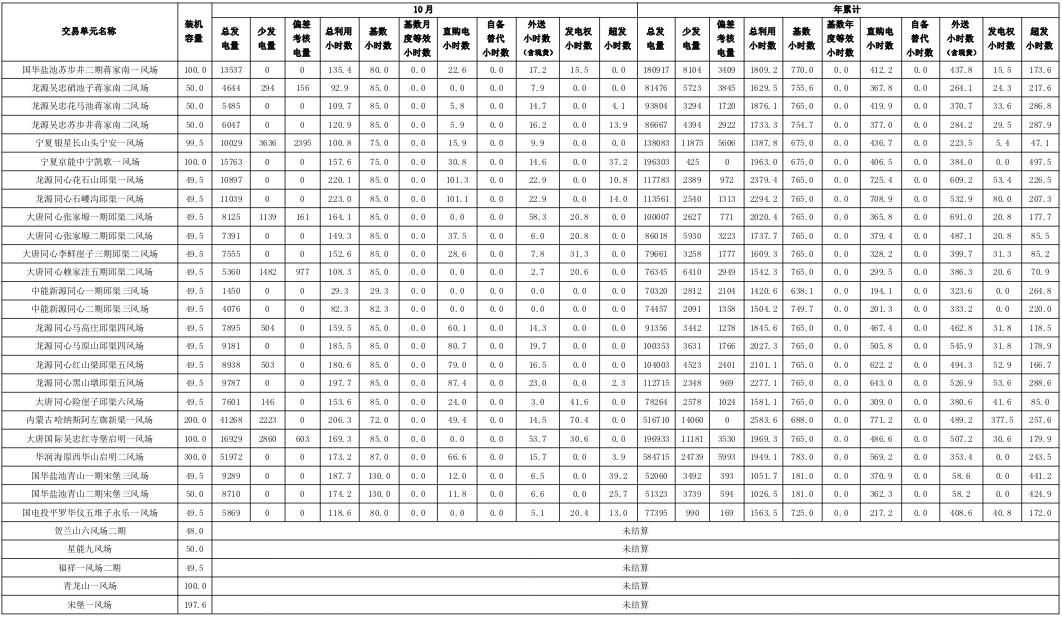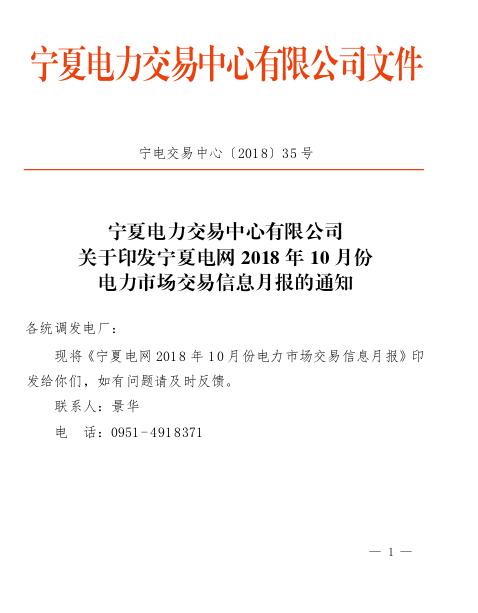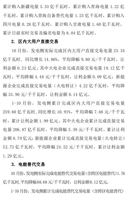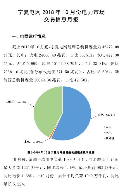 寧夏2018年10月電力市場交易信息月報:購售電服務費1248.04萬元