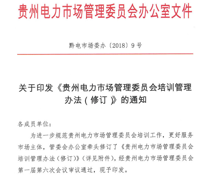 關(guān)于印發(fā)《貴州電力市場管理委員會培訓(xùn)管理辦法(修訂)》的通知
