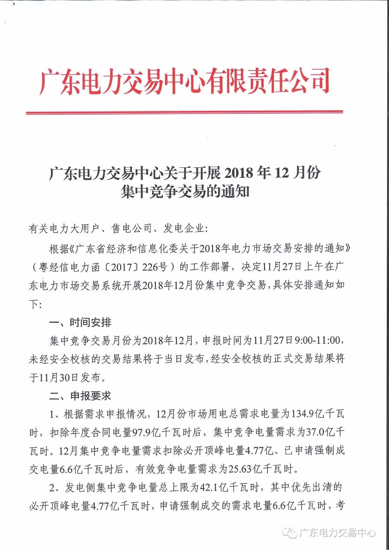 廣東2018年12月集中競爭交易:電量需求25.63億千瓦時
