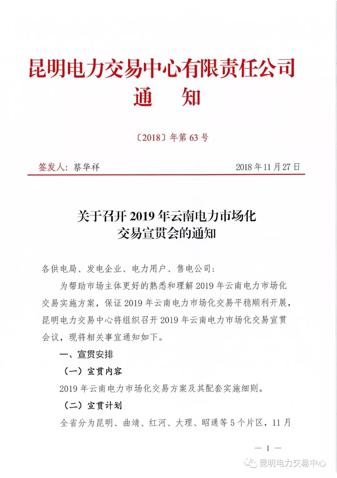 關(guān)于召開2019年云南電力市場(chǎng)化交易宣貫會(huì)的通知