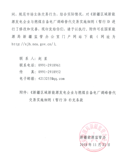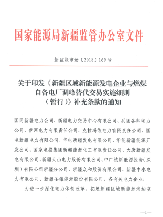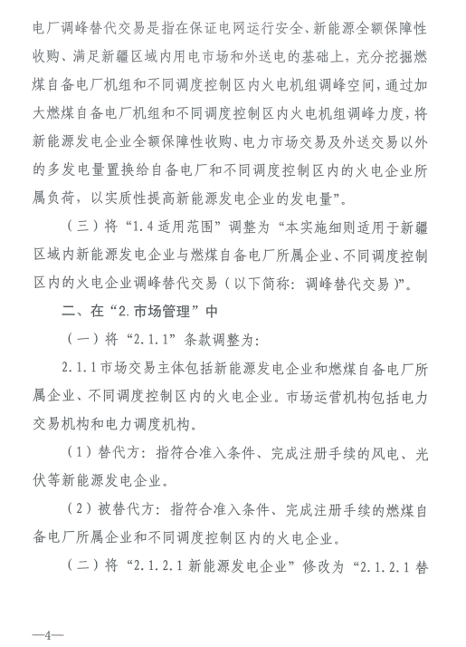 新疆新能源發(fā)電企業(yè)與燃煤自備電廠調(diào)峰替代交易實施細則補充條款發(fā)布
