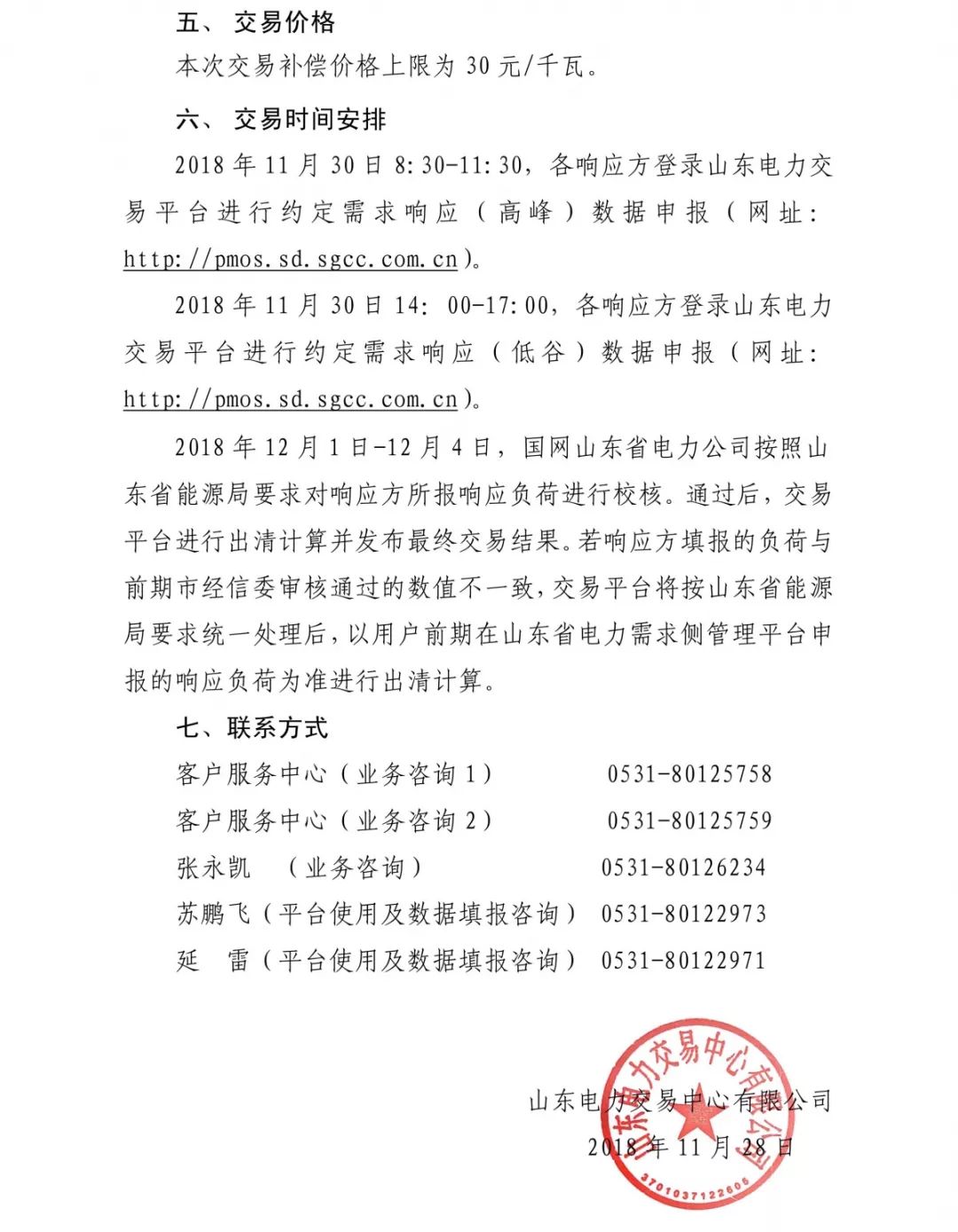 2018年11月30日14:00~17:00,各響應(yīng)方登錄山東電力交易平臺(tái)進(jìn)行約定需求響應(yīng)(低谷)數(shù)據(jù)申報(bào)(網(wǎng)址:http://pmos.sd.sgcc.com.cn)。