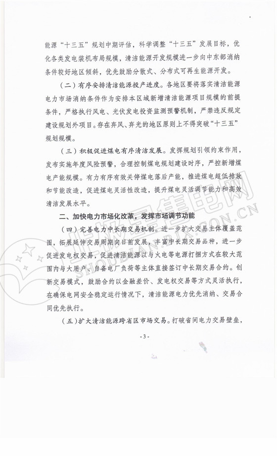 2.擴(kuò)大清潔能源跨省區(qū)市場(chǎng)交易。打破省間電力交易壁壘,推進(jìn)跨省區(qū)發(fā)電權(quán)置換交易,確保省間清潔能源電力送電協(xié)議的執(zhí)行,清潔能源電力可以超計(jì)劃外送。在當(dāng)前跨區(qū)域省間富余可再生能源電力現(xiàn)貨交易試點(diǎn)的基礎(chǔ)上,進(jìn)一步擴(kuò)大市場(chǎng)交易規(guī)模,推動(dòng)受端省份取消外受電量規(guī)模限制,鼓勵(lì)送受兩端市場(chǎng)主體直接開展交易。各地不得干預(yù)可再生能源報(bào)價(jià)和交易。合理擴(kuò)大核電消納范圍,鼓勵(lì)核電參與跨省區(qū)市場(chǎng)交易。