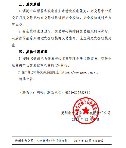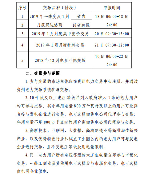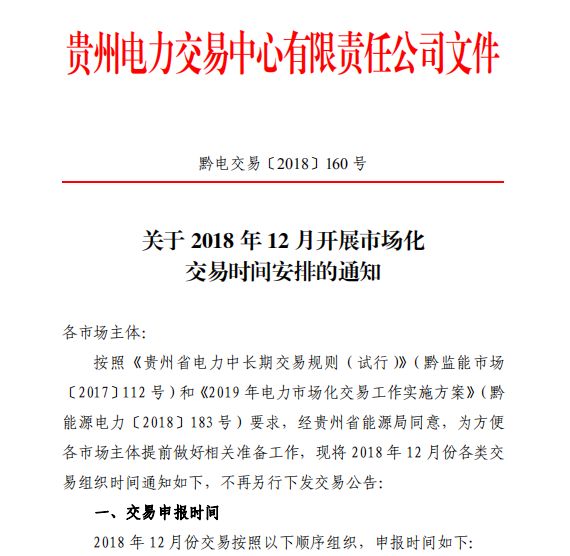 貴州2018年12月市場(chǎng)化交易時(shí)間安排