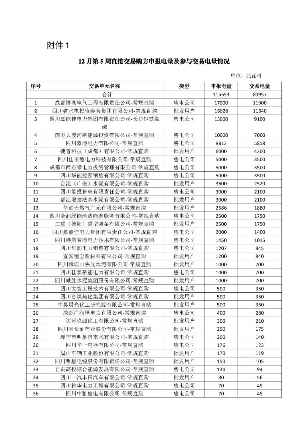 公告 | 四川電力交易中心關(guān)于開(kāi)展2018年12月第5周直接交易的公告