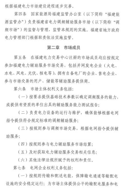 福建能監(jiān)辦日前發(fā)布了《關(guān)于福建省電力調(diào)頻輔助服務(wù)市場啟動運(yùn)行有關(guān)工作的通知(閩監(jiān)能市場〔2018〕139號)》、關(guān)于印發(fā)《福建省電力調(diào)頻輔助服務(wù)市場交易規(guī)則(試行)》的通知(閩監(jiān)能市場〔2018〕140號),定于2018年12月18日起福建電力調(diào)頻輔助服務(wù)市場啟動模擬測試運(yùn)行。