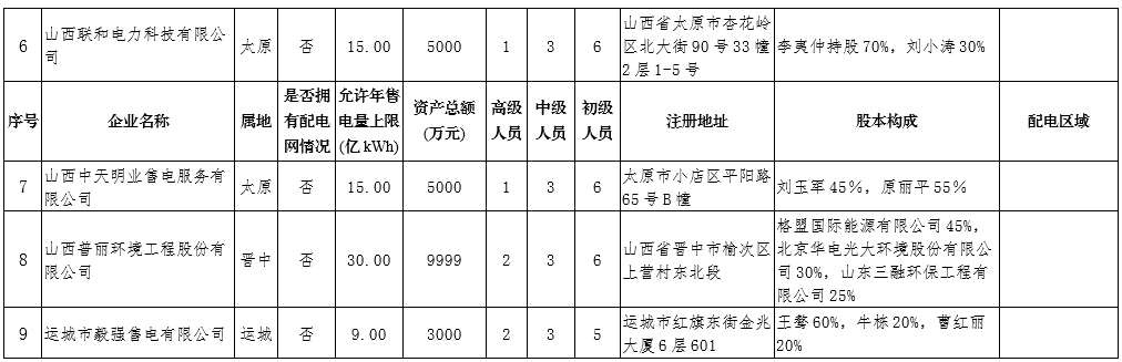 山西省能源局關(guān)于擬參加山西電力市場售電公司名單(第七批)的公示