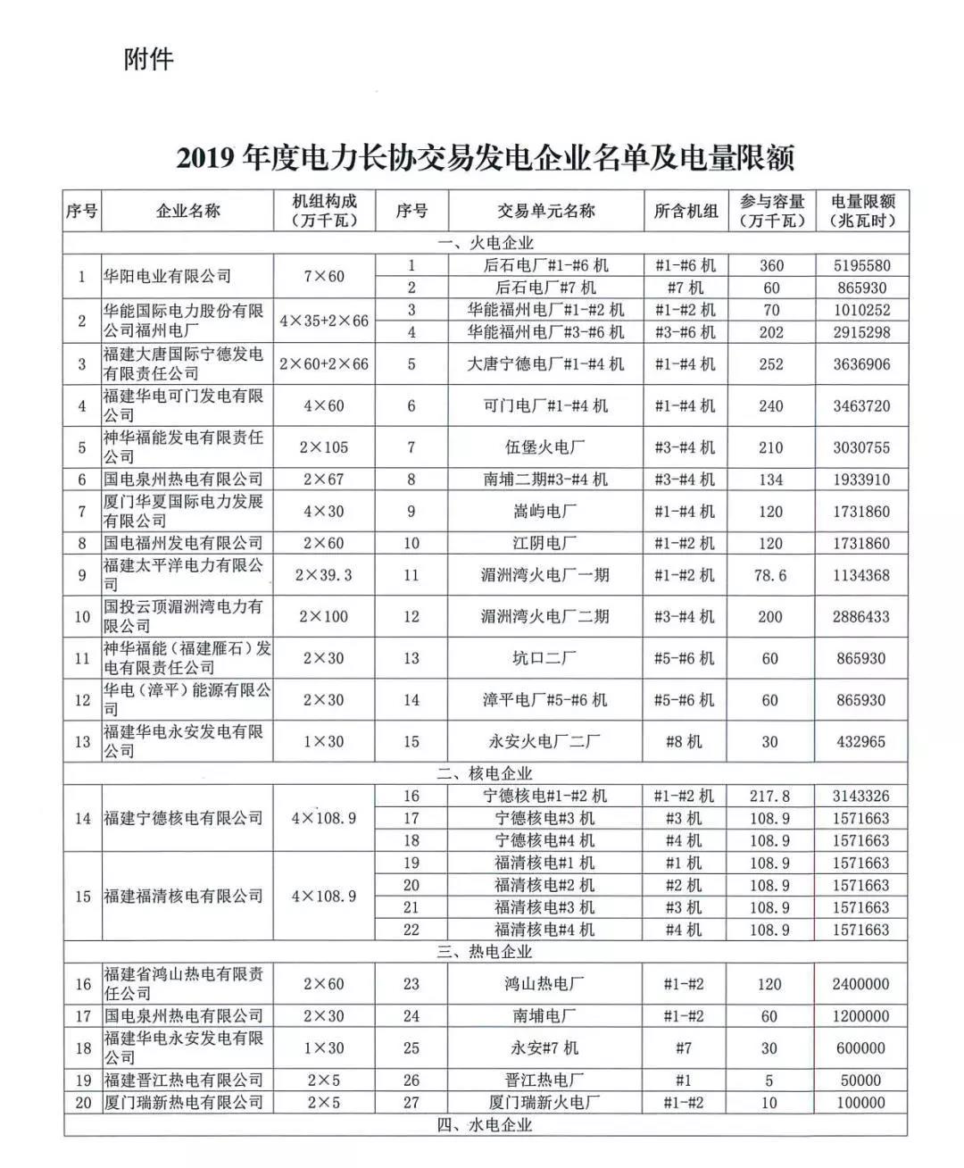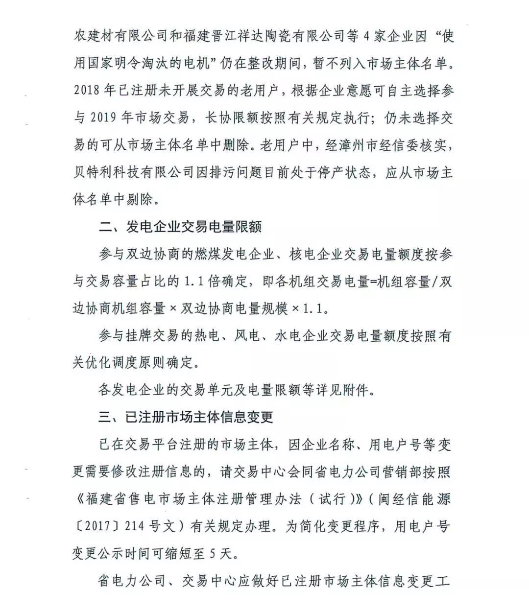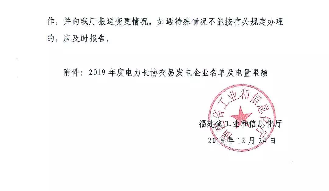 福建省工業(yè)和信息化廳關(guān)于明確2019年電力市場(chǎng)交易有關(guān)事項(xiàng)的函