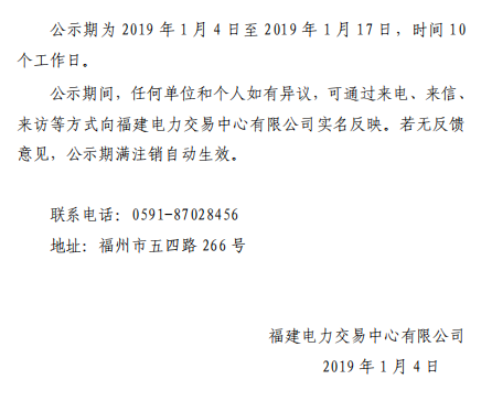 福建電力交易中心發(fā)布了《關于2019年1月電力用戶和發(fā)電企業(yè)注冊信息注銷情況的公示》
