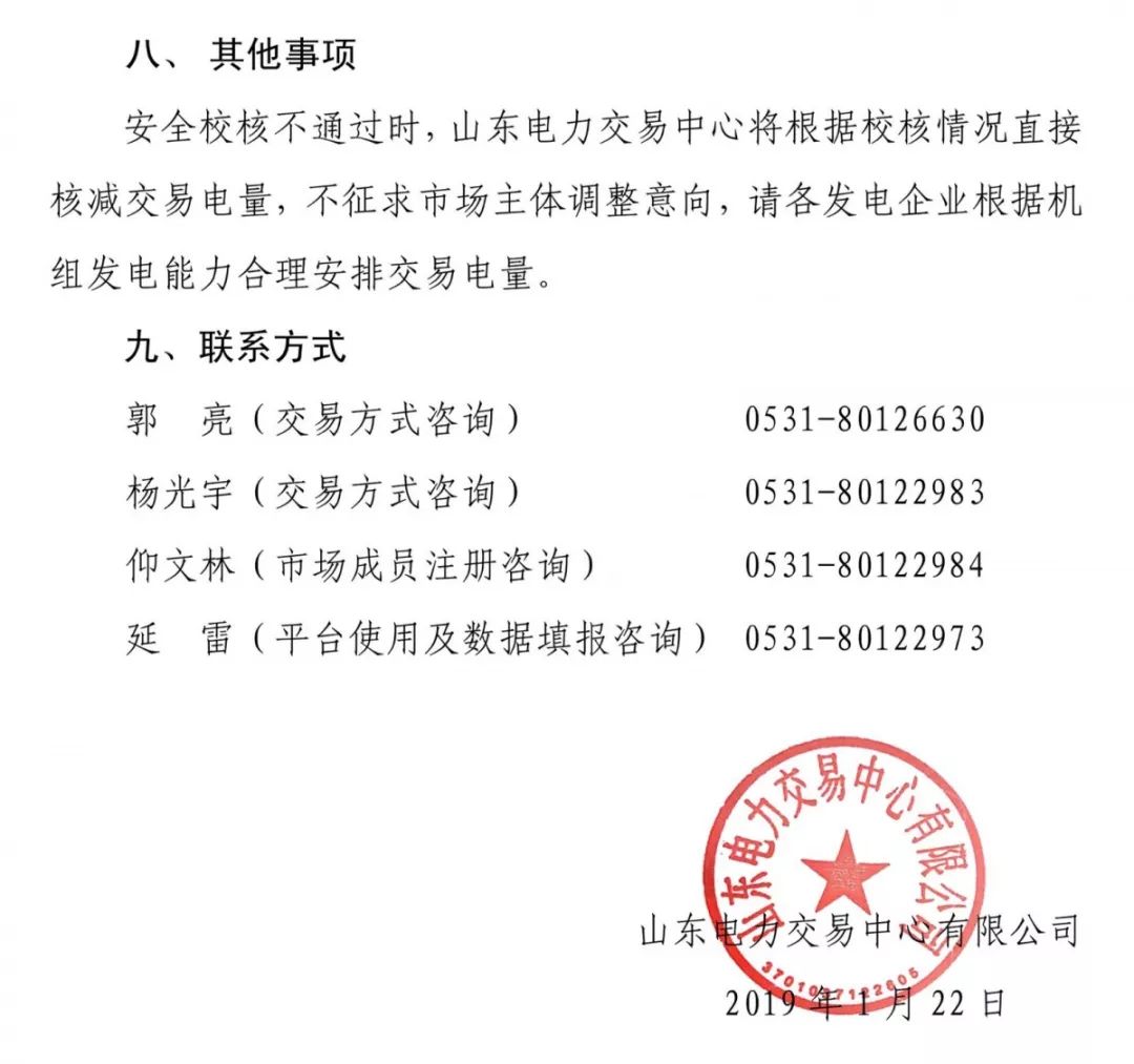 2019年1月28日,山東電力交易中心發(fā)布最終交易結(jié)果。