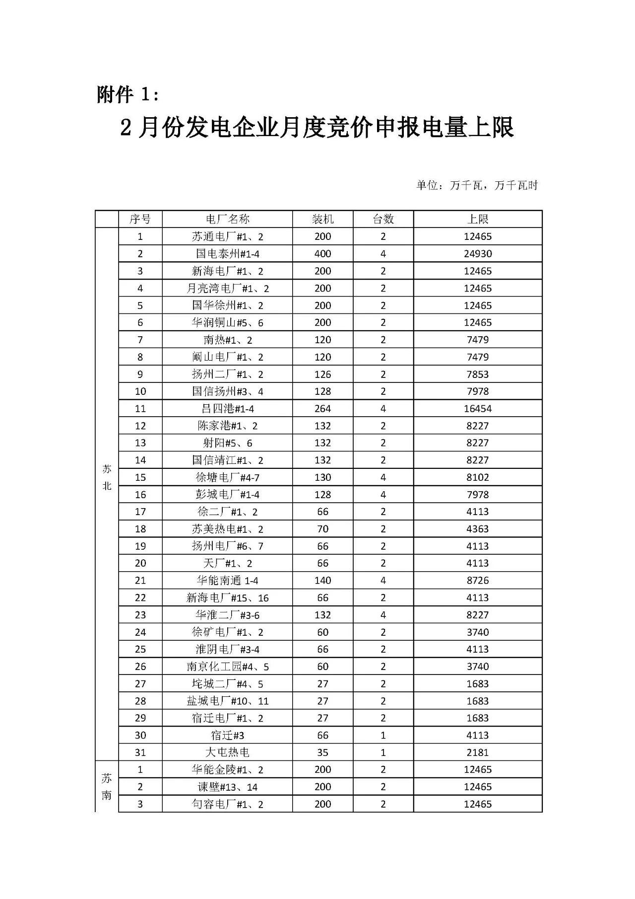 2019年2月份江蘇省電力集中競價(jià)交易公告