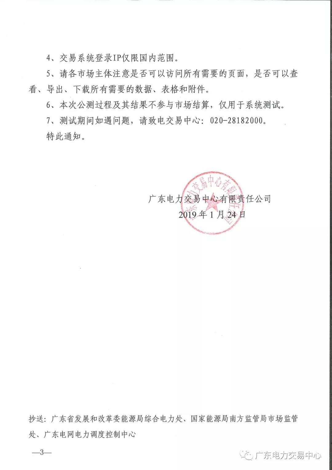 按照市場建設(shè)的工作部署,廣東電力交易中心近期對交易系統(tǒng)進行了優(yōu)化升級,為保障交易順利開展,現(xiàn)定于1月25日通過交易系統(tǒng)進行月度交易功能的第二次公開測試。請全部的批發(fā)市場主體必須按要求參與公開測試,如因未參與公開測試而導(dǎo)致后續(xù)不能正常進行月度交易的,后果自行承擔(dān)。通知原文如下: