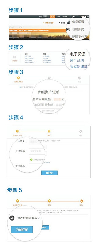 貸款買房,貸款買車,都要求開具個人資產(chǎn)證明,跑銀行排隊是免不了的,對此,支付寶宣布,推出電子憑證功能?! ≈Ц秾毞矫娣Q,隨著余額寶等互聯(lián)網(wǎng)金融產(chǎn)品的普及,開具網(wǎng)上資產(chǎn)和收支明細(xì)作為出國簽證、銀